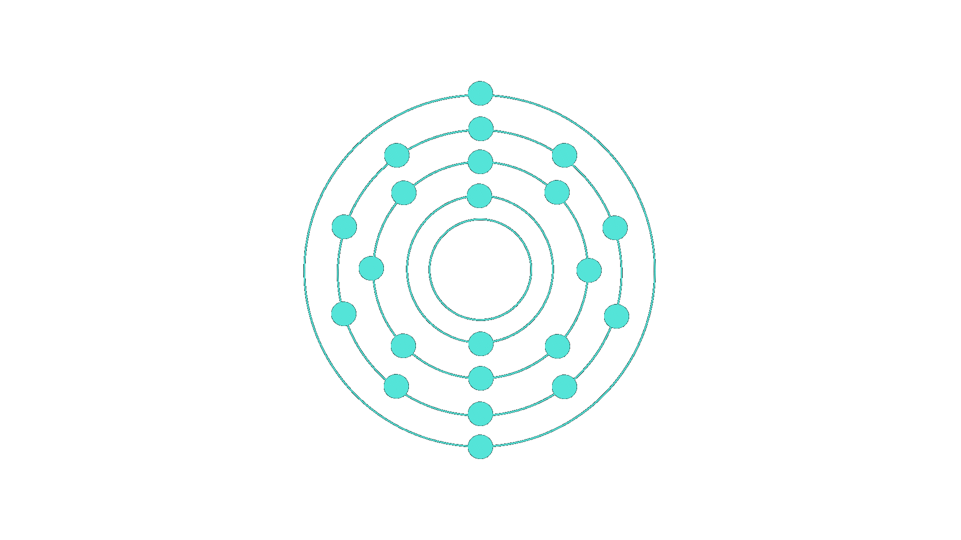 Multi-layered diagram with circles connected by lines on a black background, representing an atomic or molecular structure of titanium.